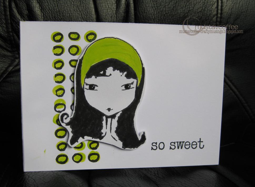These are fabulous CAS cards! I really love the green on the first one - so striking - and she looks a little like me. LOL The paint on the second is so cool and I prefer the small 'love' without the forever die. ;)